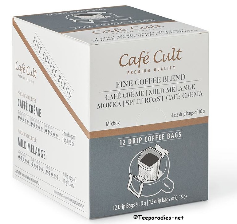 Café Cult: Mix Box Drip Coffee Bags Fine Blend Kaffee 4 Sorten je 3 Sachets à 10 g = 120 g.