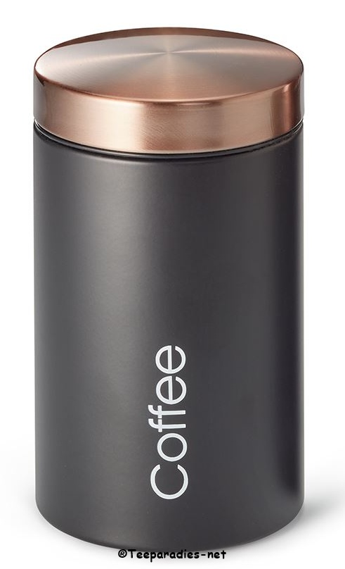 Kaffee-Dose "Nassim" verzinkter Stahl, rund, Stülpdeckel, matt mit Aufschrift "Coffee" (Bohnen 268g/Pulver 265g) H 15,2 cm, Ø 7,4 cm