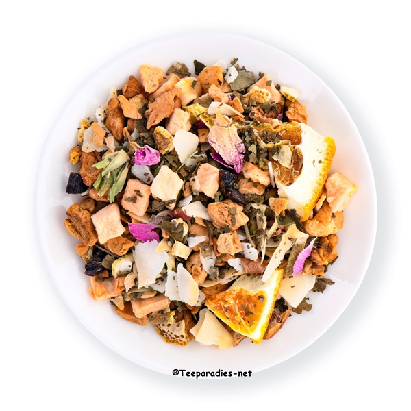 • Specials This fruit tea is reminiscent of pleasant Christmas scents such as marzipan and vanilla. Paired with fruity nuances of orange, the result is a wonderfully harmonious Christmas creation that enchants the senses!