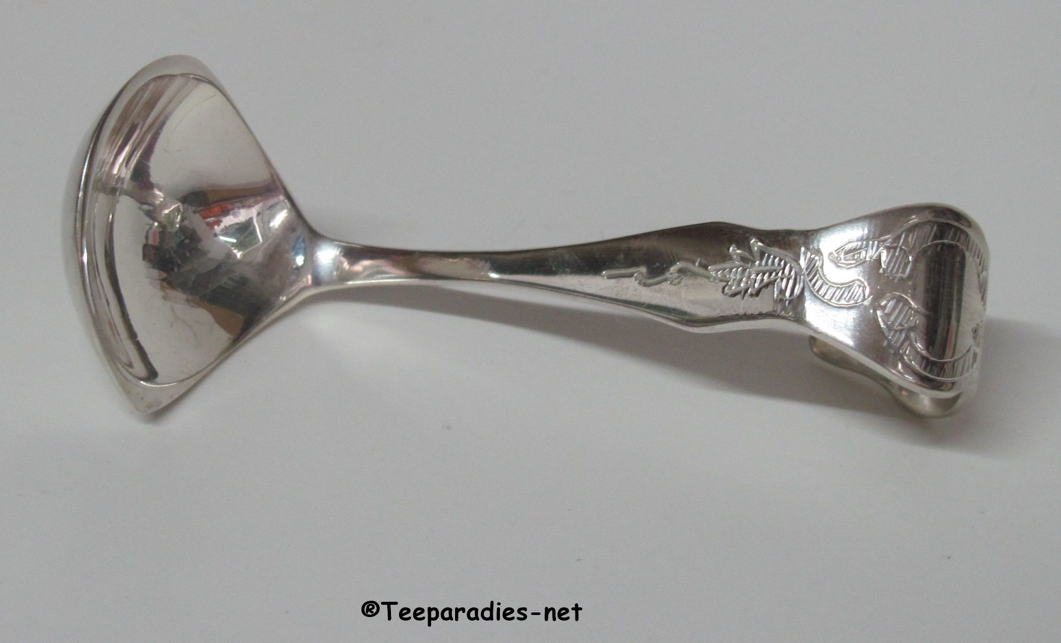 Der Löffel ist versilbert mit Ostfriesenmotiv.