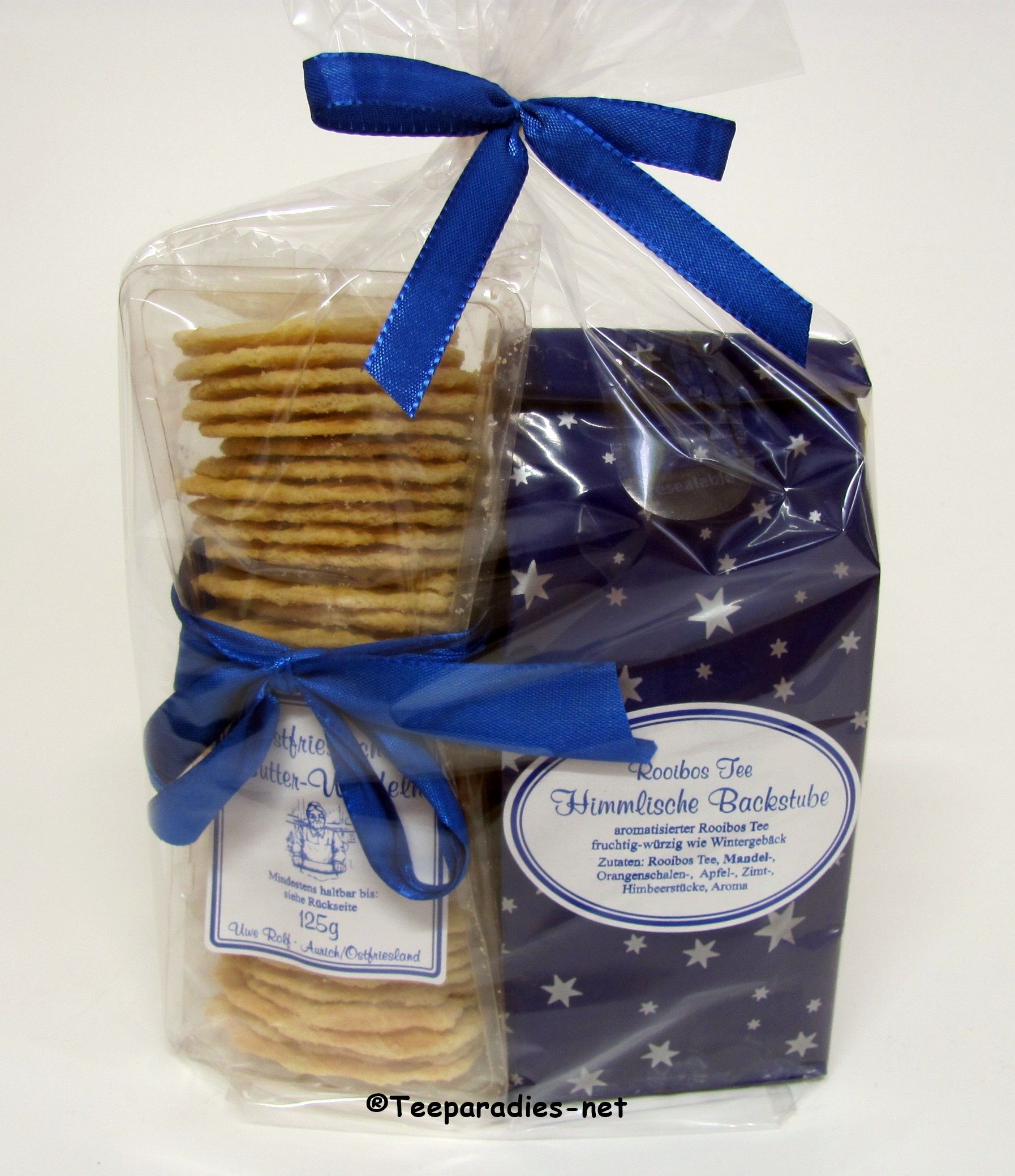Weihnachtspräsent in Folie „Ostfriesische Butterwaffeln & Himmlische Backstube“ (Artikel Nr.: A-0190) Inhalt des Weihnachtspräsentes in Folie: 125 g. „Ostfriesische Butterwaffeln“100 g. „Himmlische Backstube“ in blauer Weihnachtstüte (alternativ auch rote Weihnachtstüte) Aromatisierter Rooibostee, fruchtig-würzig wie Wintergebäck Zutaten:Rooibostee, Mandel-, Orangenschalen, Apfel-, Zimt-, Himbeerstücke,Aroma Ideal für Geschäftskunden, für besondere Anlässe oder zum Verschenken als Weihnachtspräsent für die Familie … Weiterlesen
