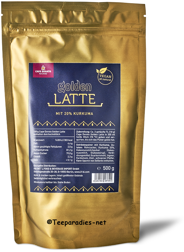 Neu bei www.tee-des-nordens.de Golden Latte von: Cape Dorato 500 g. – vegan -Neu bei www.tee-des-nordens.de